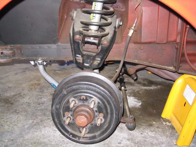 This page describes the installation of Classic Performance Products' 64-67 stock spindle front disc brake conversion kit. Aside from the obvious improvement of a disc setup over the stock drum brakes, this kit has two major benefits. First the kit is designed to work with the stock 5-lug (64-67) front spindles. No need to modify the bracket mounting boss as with the 68-74 retrofit approach. Second, this kit is designed to keep the track width the same as it was originally. Again, the 68-74 retrofit approach falls short, as that will push the front wheels out about 1/2" per side. That can cause your tires to rub if you are tight for space.