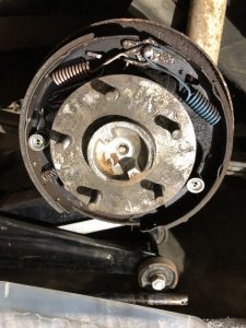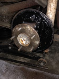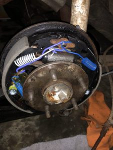 As with the other front, the hub seal was worn, and there was wheel bearing grease covering most of the brake components and the backing plate.