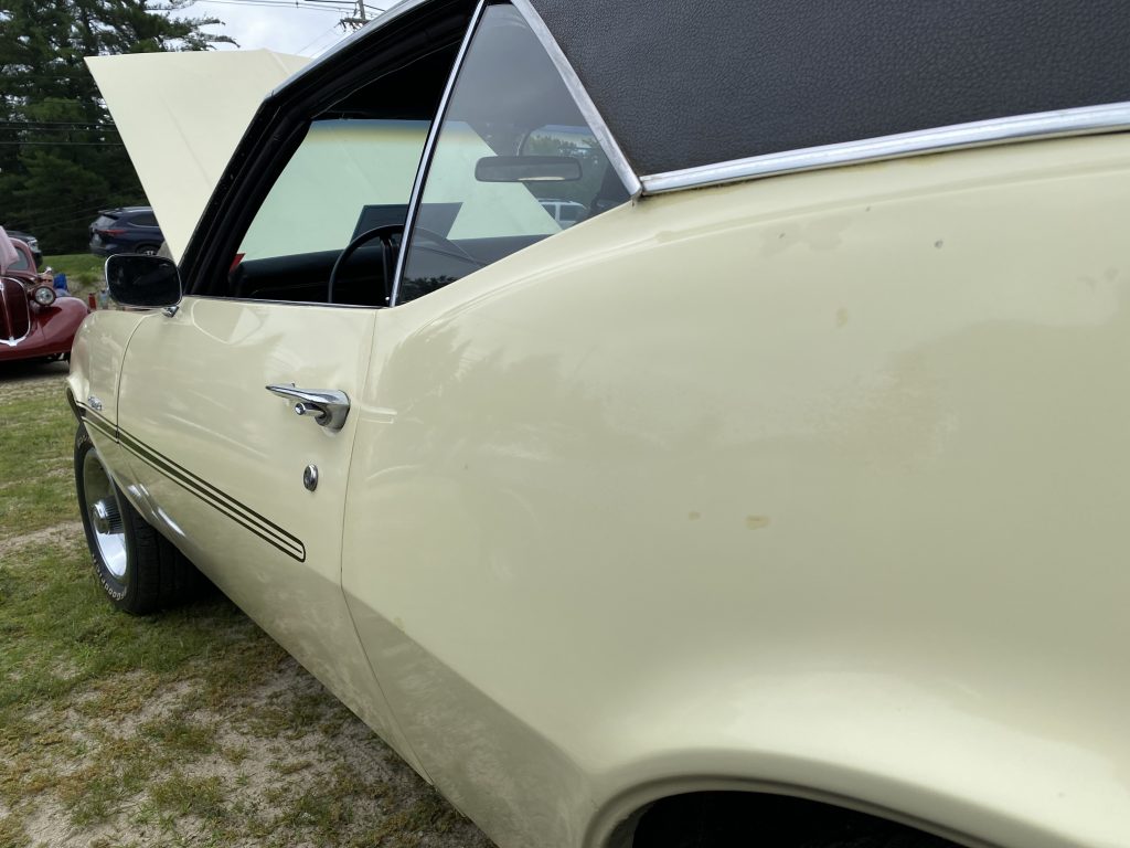 Even after working on it over a period of several months, there are bad spots, such as this pool/drip on the top of the LH front fender. The dark splotches are what’s left of a puddle of clear that was there. I’ve also pushed this as far as I feel safe, you can see where the yellow has started to wear through to show the darker paint underneath at the outer edge.