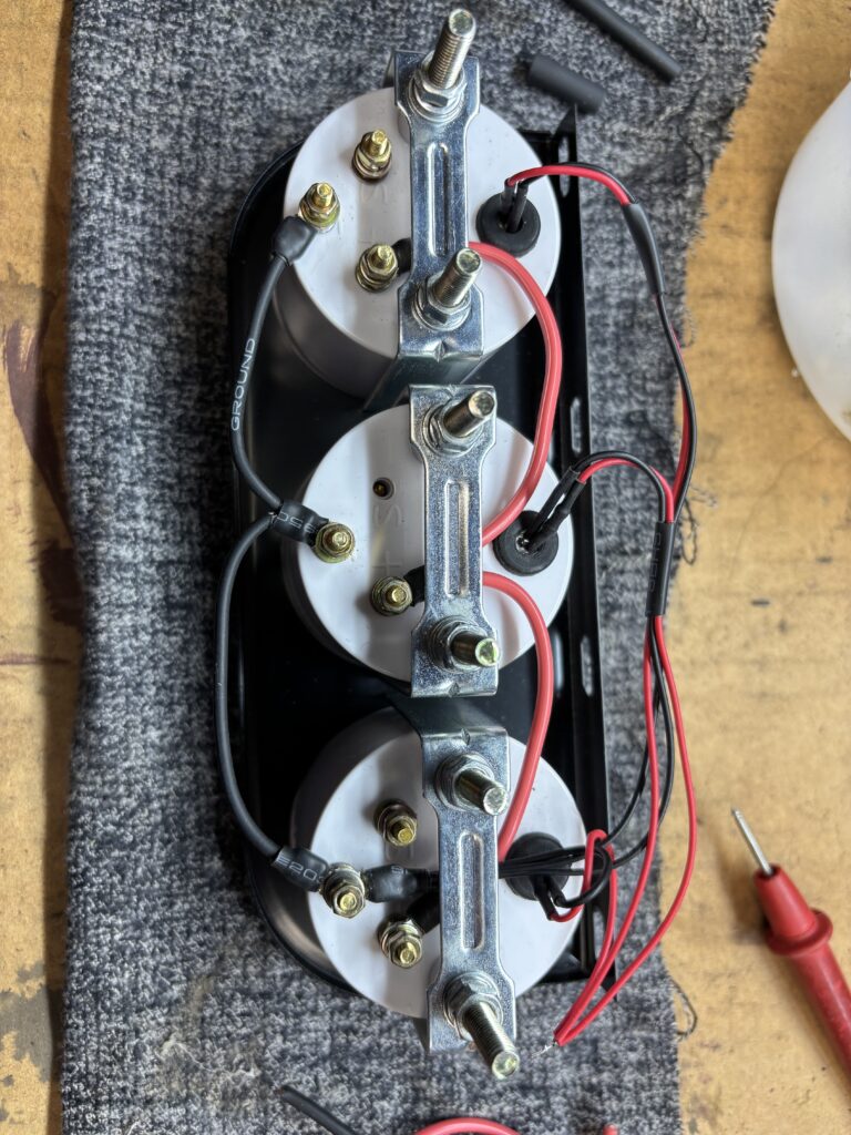 I wired up the common power and ground connections on the back of the gauges, and also the lighting.